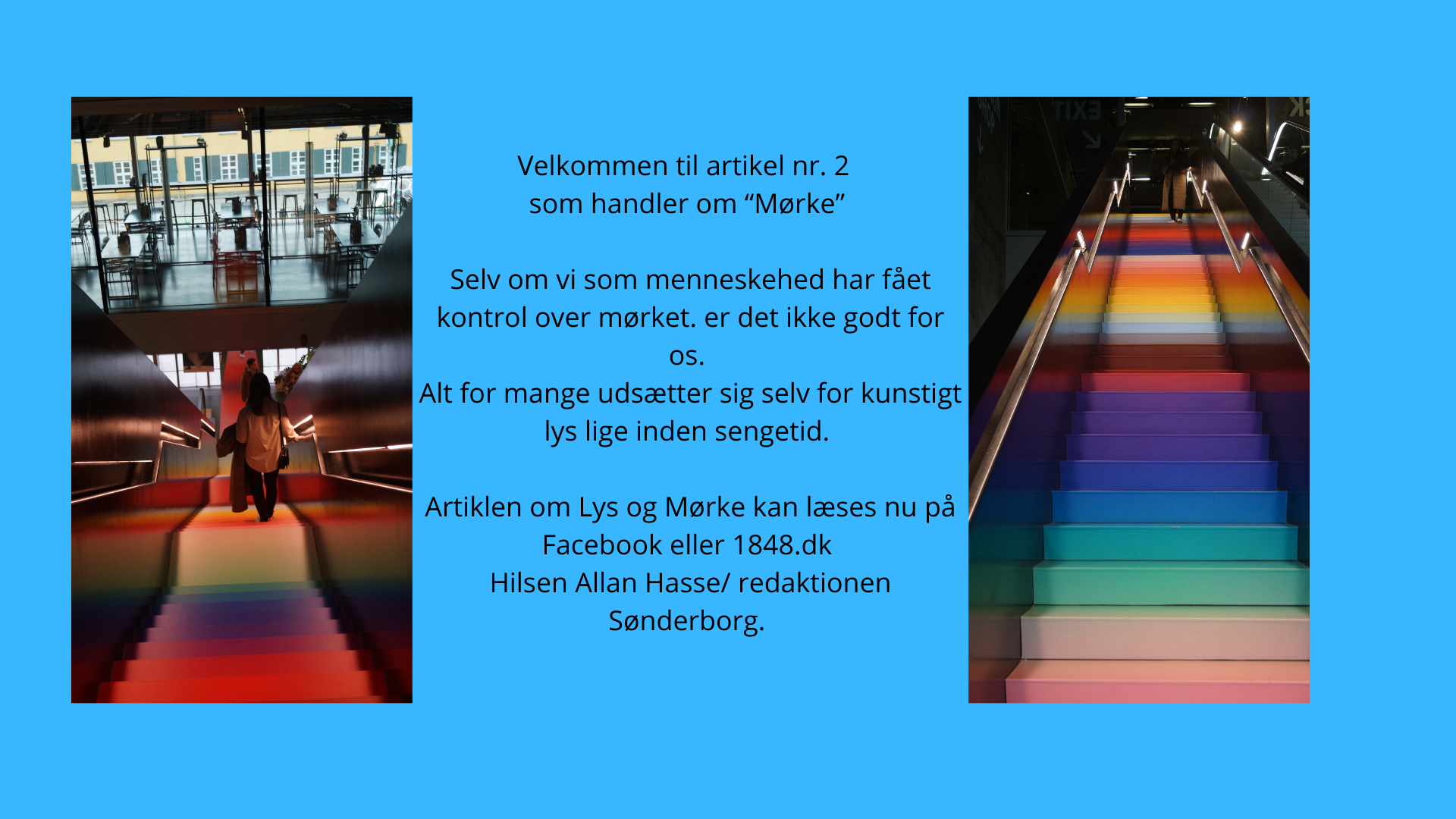 Vi går mod mørkere tider. Og jeg taler ikke om dommedags profetier. Mørke fylder mere i vinterhalvåret. Sådan har det været for vi mennesker i mange tusinde år med undtagelse at de seneste få hundrede år, hvor lyset har vundet indpas i en sådan grad, at man nu diskuterer lysforurening.